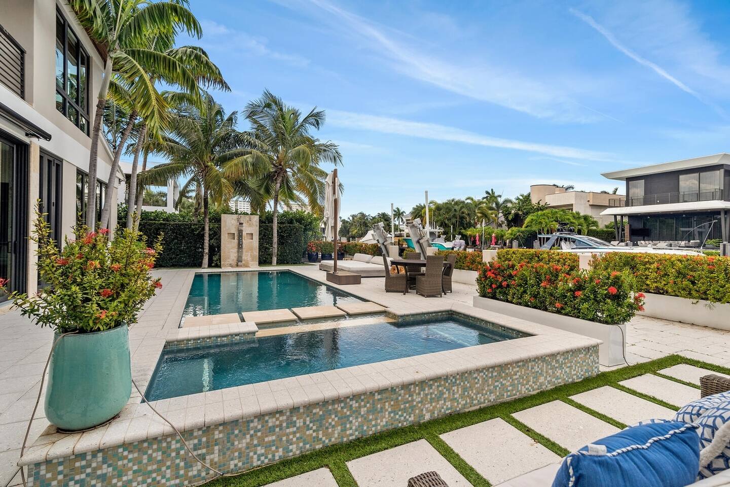 Experience luxury living in this stunning home just off Las Olas Blvd. This property boasts an open-concept living and dining area, a gourmet kitchen, a cozy family room, and a home office with a private sitting space. Enjoy the outdoor summer kitchen, spa/pool, and boat lift, all designed for ultimate relaxation. Located in one of the most exclusive neighborhoods, you’re just a 20-minutes walk to Las Olas Beach, restaurants, and a quick 5-minute kayak ride to the famous Fort Lauderdale sandbar. Perfect for family fun and stylish stays. (Valid photo ID are required prior to check-in.) House have security cameras outside and a sound level monitor inside, required by the city of Fort Lauderdale.